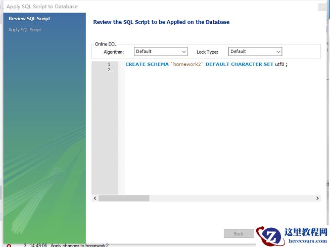 第二步:给数据库命名,并按顺序按Apply,Apply和finish