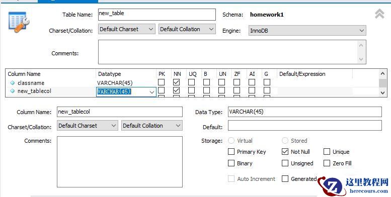 PK:primary key 主键 NN:not null 非空 UQ:unique 唯一索引 BIN:binary 二进制数据(比text更大) UN:unsigned 无符号(非负数) ZF:zero fill 填充0 例如字段内容是1 int(4), 则内容显示为0001 AI:auto increment 自增可以在上面列表中双击输入字段的信息,也可以直接在下面的输入框中输入信息。