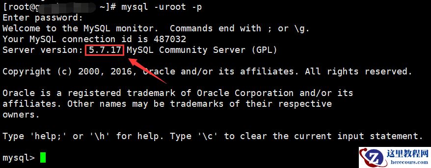 [root@heyong ~]# mysql -uroot -p Enter password: Welcome to the MySQL monitor. Commands end with ; or \g. Your MySQL connection id is 487032Server version: 5.7.17 MySQL Community Server (GPL) Copyright (c) 2000, 2016, Oracle and/or its affiliates. All rights reserved. Oracle is a registered trademark of Oracle Corporation and/or its affiliates. Other names may be trademarks of their respective owners. Type 'help;' or '\h' for help. Type '\c' to clear the current input statement. mysql>