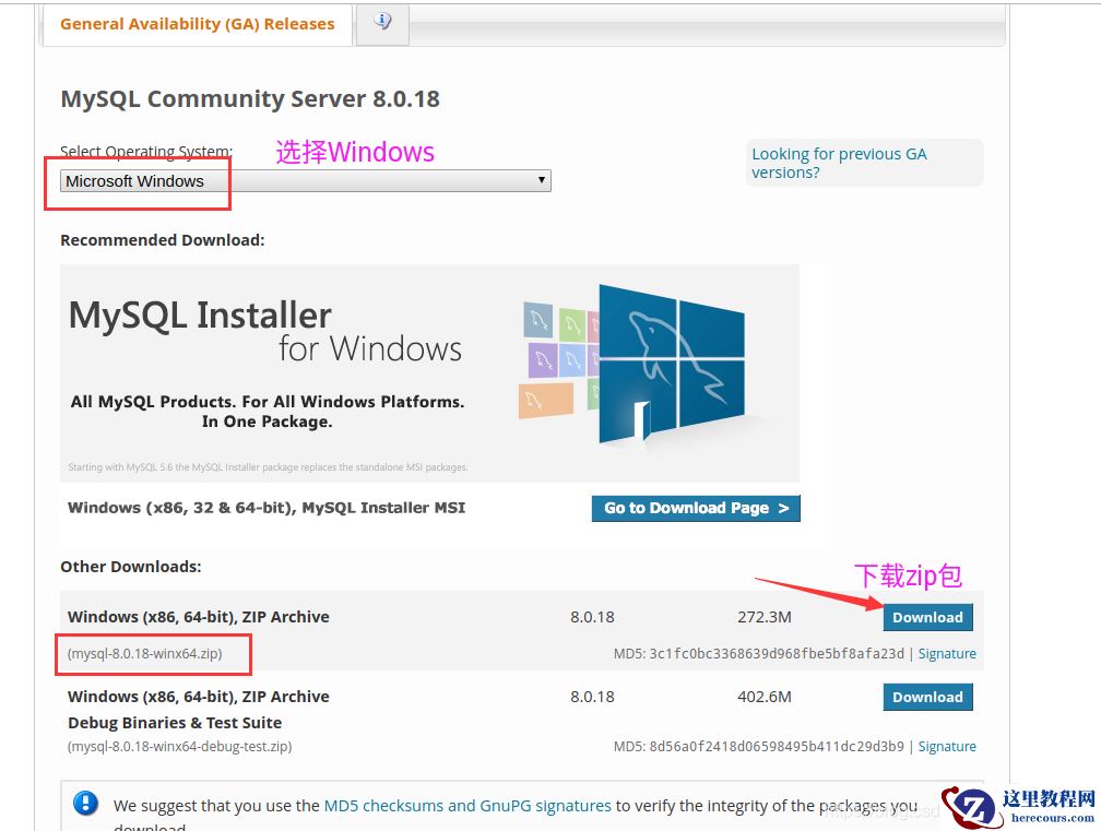 第一步、去mysql官网下载一个免安装版的MySQL的zip包