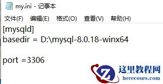 [mysqld] basedir = D:\mysql-8.0.18-winx64 datadir = D:\data port =3306