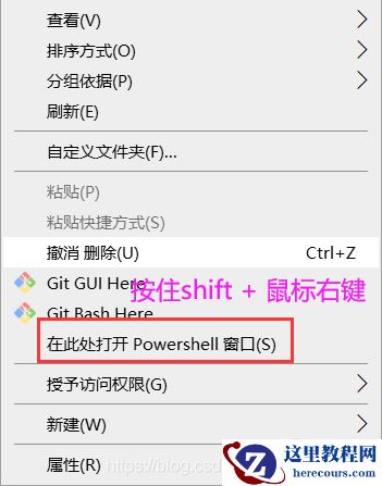 当然也可以按住Shift + 鼠标右键 会有一个powershell窗口