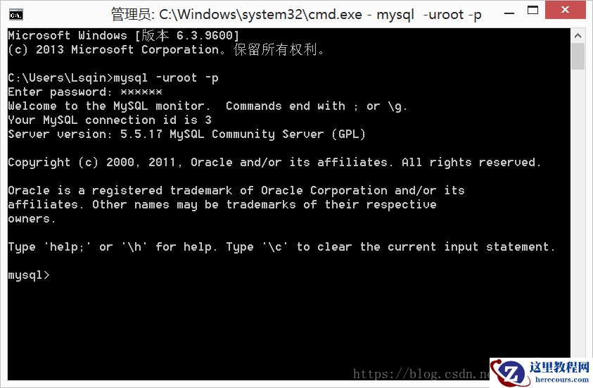 mysql -uroot -p /*如果刚安装好MySQL,root是没有密码的*/