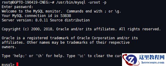 /usr/bin/mysql -u账号 -p输入密码,连接Mysql: