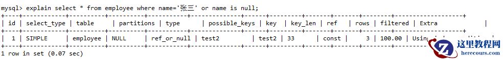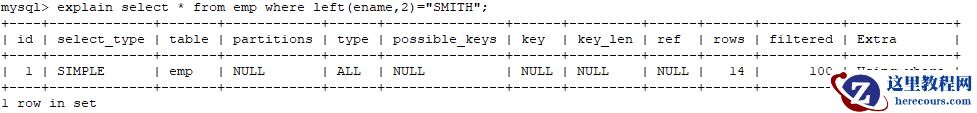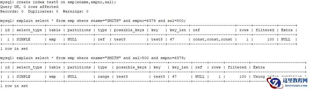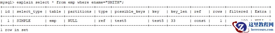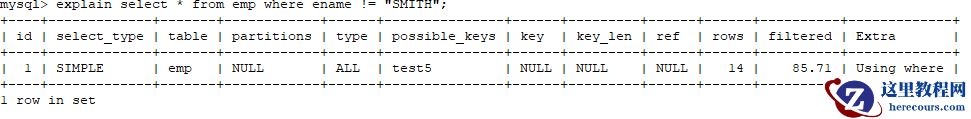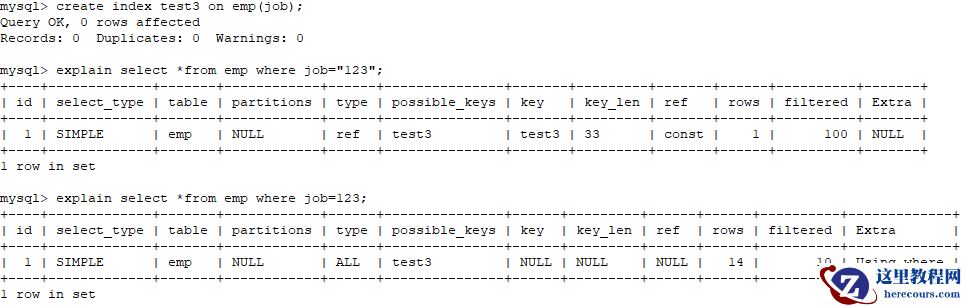 4、如果列类型是字符串,那一定要在条件中将数据使用引号引用起来,否则不使用索引