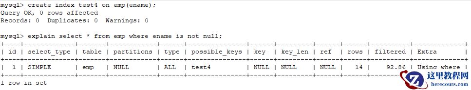 索引是不索引空值的,所以这样的操作不能使用索引,可以用其他的办法处理,例如:数字类型,判断大于0,字符串类型设置一个默认值,判断是否等于默认值即可。(此处是错误的!)