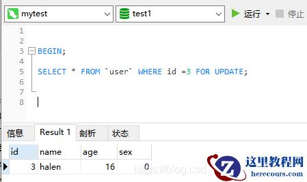 1.我们直接给某行数据上个排他写锁 X (注意我们的事务是没有执行COMMIT的) :