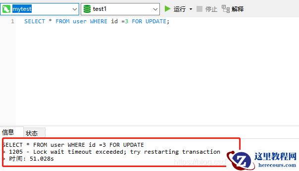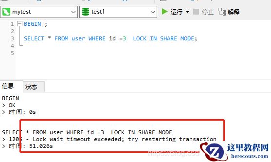 所以mysql会有个等待锁资源超时的机制,这种情况就会直接返回查询失败的结果。