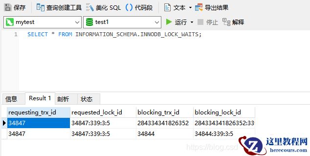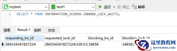 4.验证下,我们查看当前是否存在事务在等待锁: