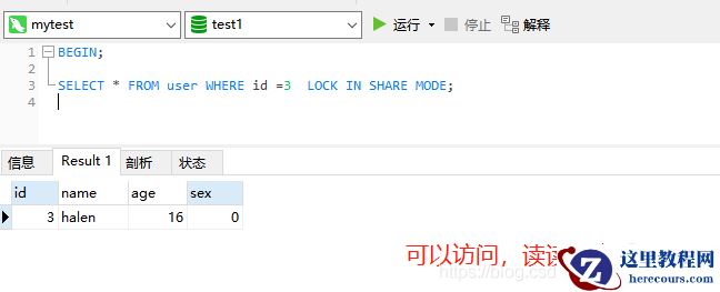 顺便介绍一下如何 加 共享锁(共享读锁) :