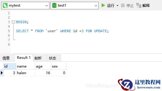上面的sql能上行级排他锁,是因为命中了索引, id 是 索引。