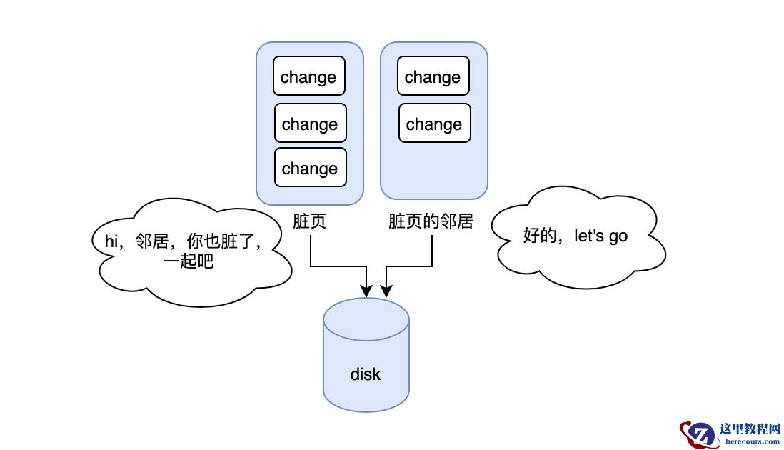在脏页刷盘的过程中,InnoDB这里有个优化:如果要刷的脏页的邻居页也脏了,那么就顺带一起刷,这样的好处就是可以减少随机IO,在机械磁盘的情况下,优化应该挺大,但是这里可能会有坑,如果当前脏页的邻居脏页在被一起刷入后,邻居页立马因为数据的变更又变脏了,那此时是不是有种多此一举的感觉,并且反而浪费了时间和开销。更糟糕的是如果邻居页的邻居也是脏页...,那么这个连锁反应可能会出现短暂的性能问题。