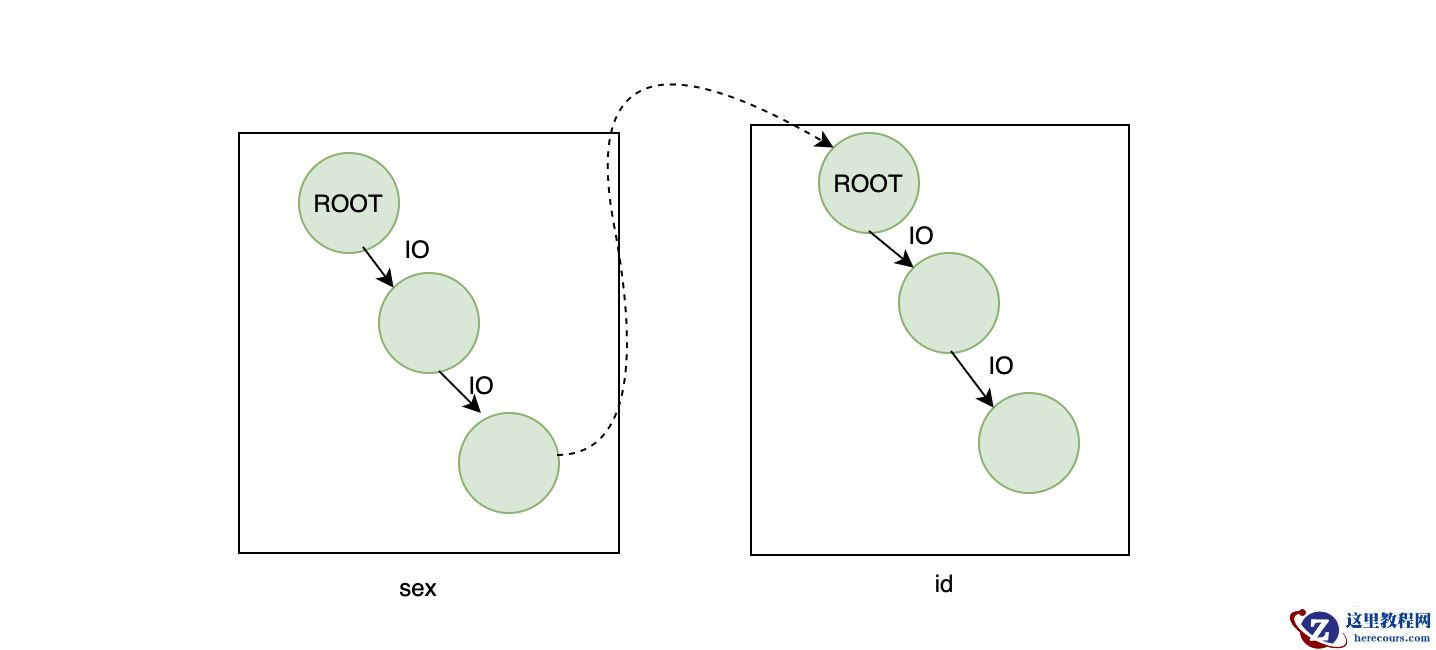 如果不出意外的话,InnoDB是不会选择性别这个索引的。如果走性别索引,那么一定是需要回表的,在数据量很大的情况下,回表会造成什么样的后果?我贴一张和上面一样的图想必大家都知道了: