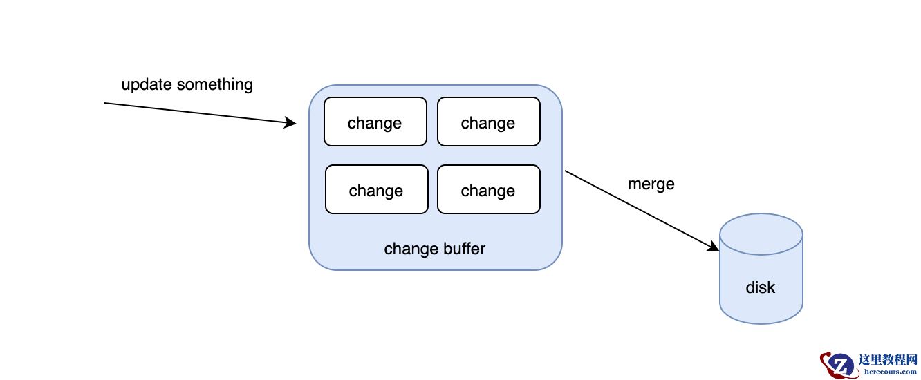 为了解决这种情况下的速度问题,change buffer出现了,首先不要被buffer这个单词误导,change buffer除了会在公共的buffer pool里之外,也是会持久化到磁盘的。当有了change buffer之后,我们更新的过程中,如果发现对应的数据页不在内存里的话,也不去磁盘读取相应的数据页了,而是把要更新的数据放入到change buffer中,那change buffer的数据何时被同步到磁盘上去?如果此时发生读动作怎么办?首先后台有个线程会定期把change buffer的数据同步到磁盘上去的,如果线程还没来得及同步,但是又发生了读操作,那么也会触发把change buffer的数据merge到磁盘的事件。