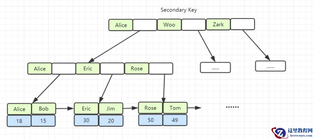 哈希索引能够以 O(1) 的速度处理单个数据行的增删改查,但是面对范围查询或者排序时就会导致全表扫描的结果。 B树可以在非叶结点中存储数据,由于所有的节点都可能包含目标数据,我们总是要从根节点向下遍历子树查找满足条件的数据行,这个特点带来了大量的随机 I/O,造成性能下降。 B+树所有的数据行都存储在叶节点中,而这些叶节点可以通过『指针』依次按顺序连接,当我们在如下所示的 B+ 树遍历数据时可以直接在多个子节点之间进行跳转,这样能够节省大量的磁盘 I/O 时间。二叉树:树的高度不均匀,不能自平衡,查找效率跟数据有关(树的高度),并且IO代价高。