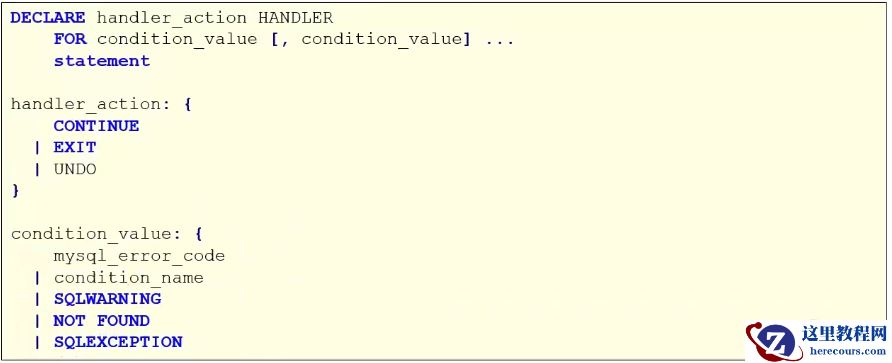 MySQL存储过程也提供了对异常处理的功能:通过定义HANDLER来完成异常声明的实现