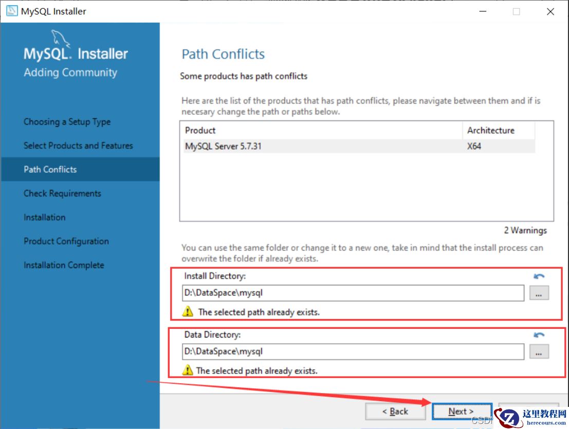 7. 确认一下安装路径和数据存放路径对不对,没有问题的话就直接点击Next