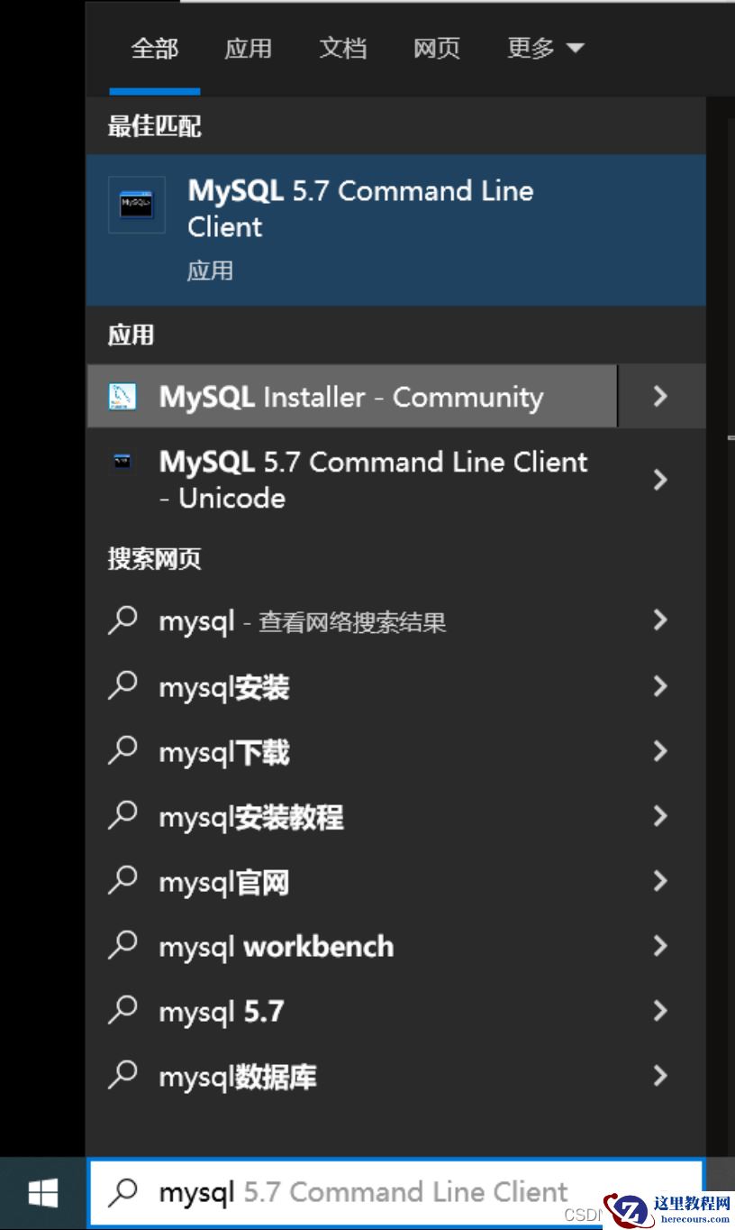 25. 在开始界面搜索mysql,点击第一个MySQL 5.7 Command Line Client