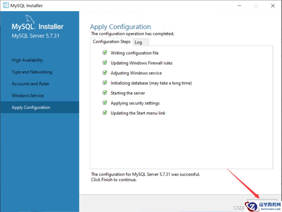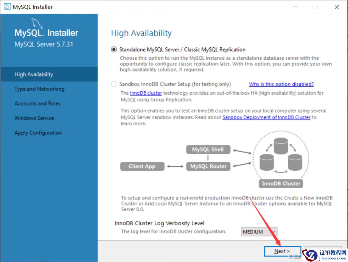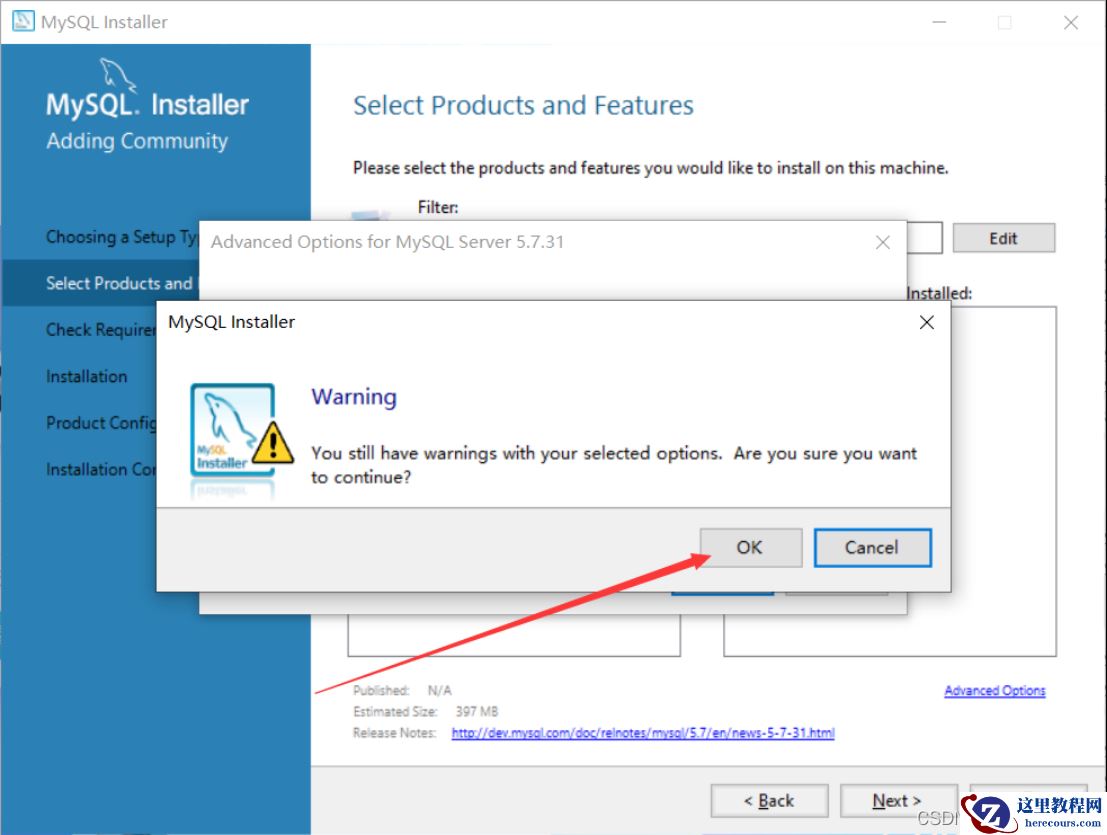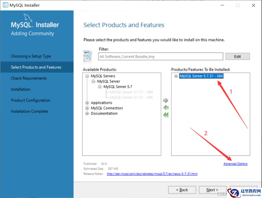 3. 先选中“MySQL Server 5.7.31” ,之后点击下方的蓝色“Advanced Options”