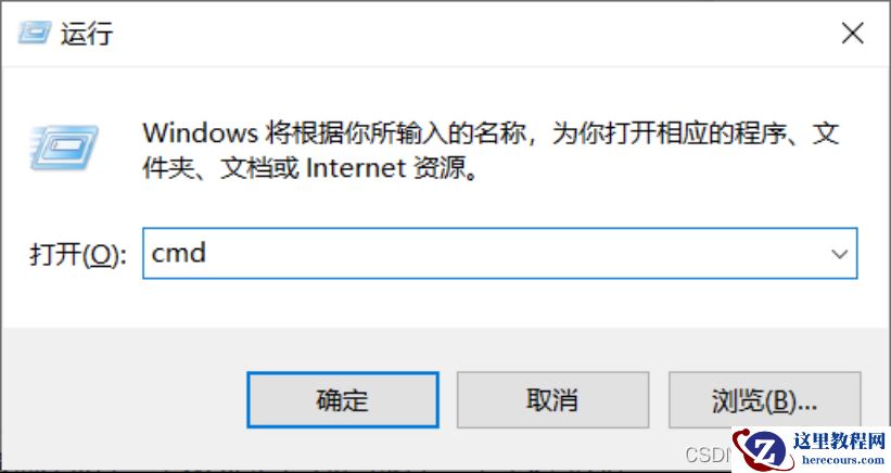 7. 验证环境变量是否配置好,按下“window+R”键 弹出运行框,输入“cmd”进入window命令行