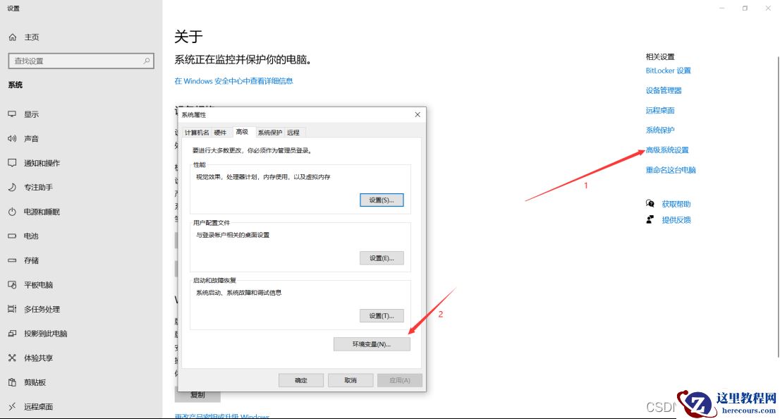 3. 先点击“高级系统设置”,再点击“环境变量”
