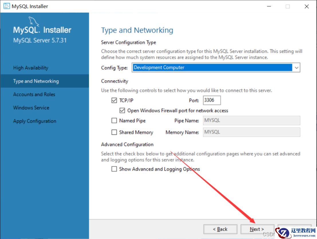 18. MySQL的默认端口是3306,不需要作修改,直接点击“Next”