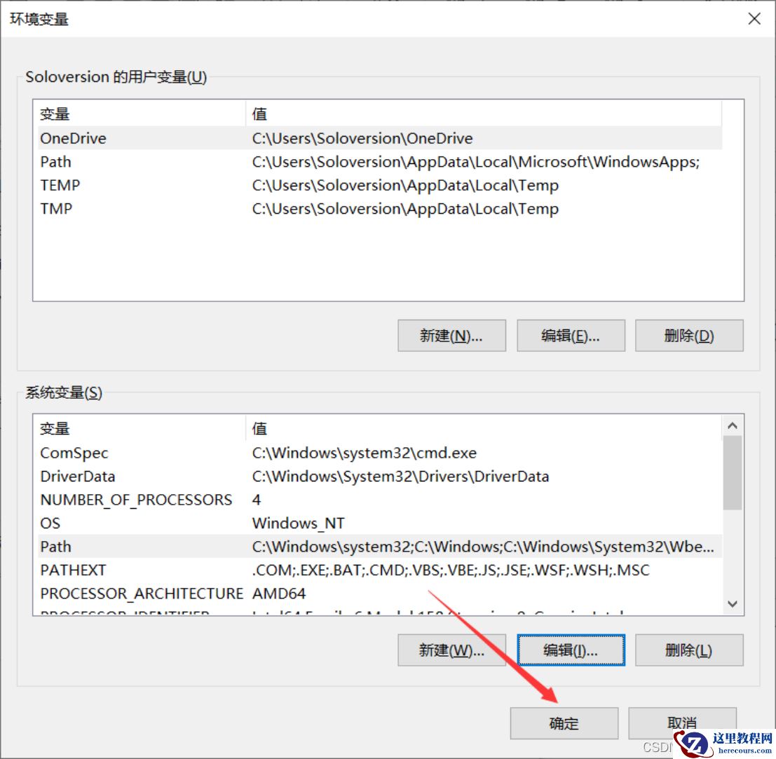 4. 在“系统变量”中选择“Path”,点击“编辑”