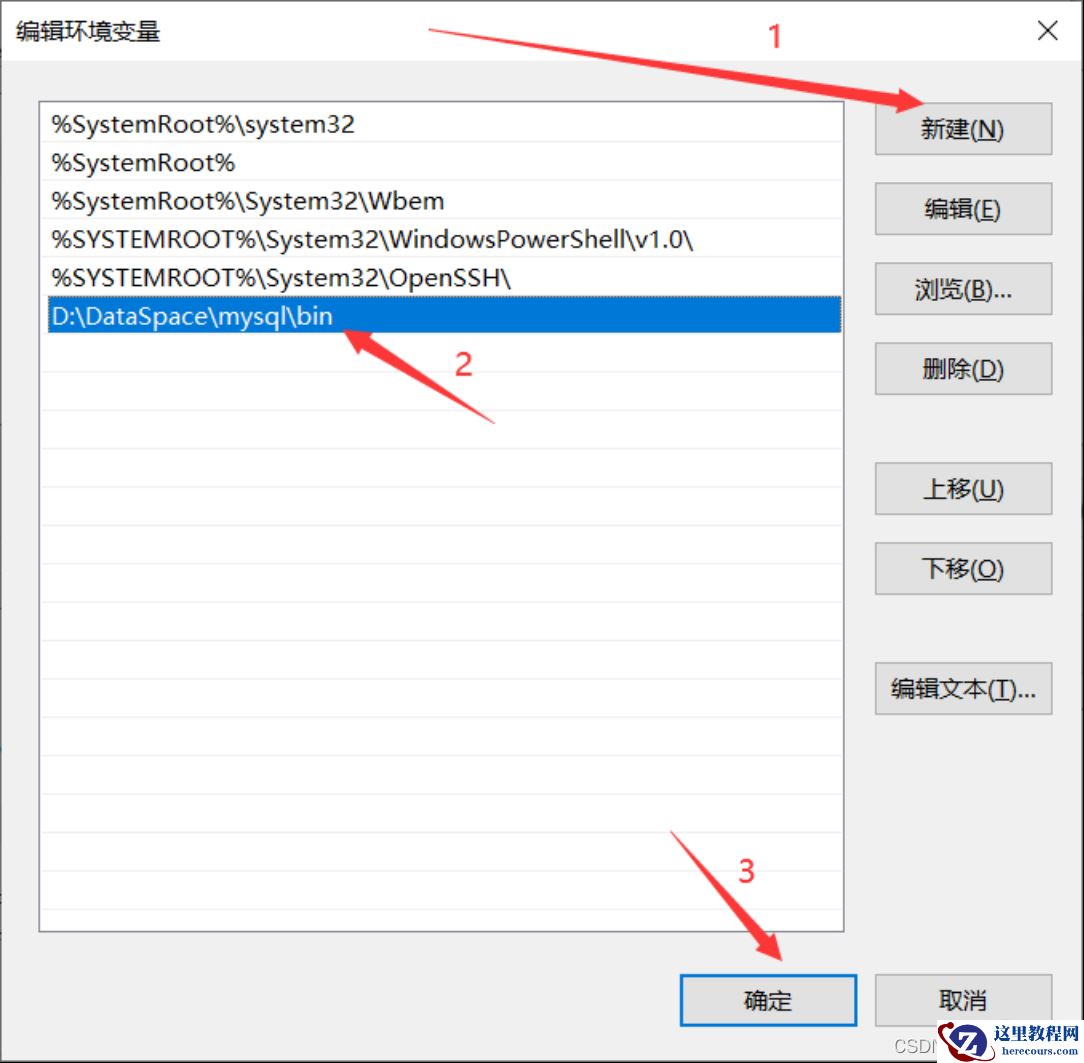 5. 点击“新建”,将MySQL的安装路径添加上去,之后点击“确定”