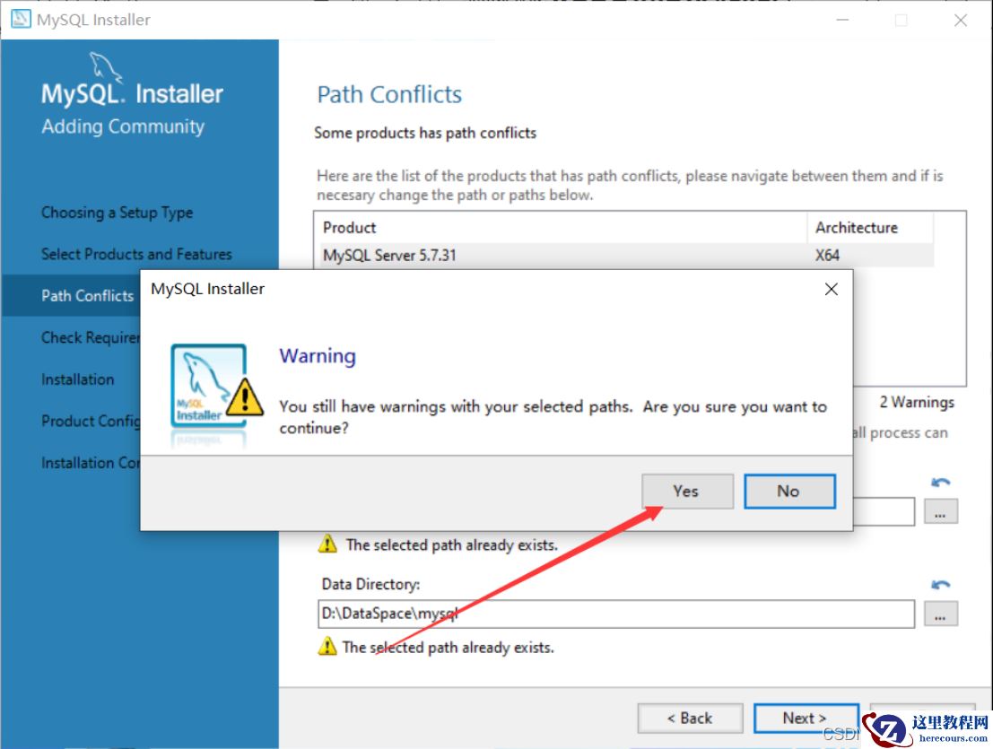 注:这里因为选择了我自己创建的路径,故程序提示路径已存在,是否要继续