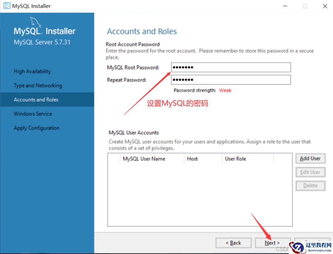 19. 这里需要设置MySQL的密码,不需要太复杂,设置完了直接点击“Next”