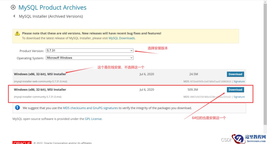 Mysql官网下载地址https://downloads.mysql.com/archives/installer/