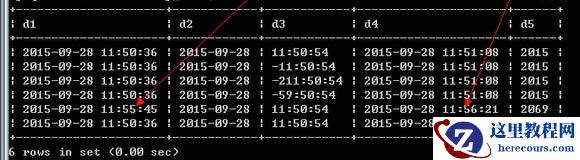 insert into my_date VALUES('2015-09-28 11:50:36','2015-09-28','11:50:54','2015-09-28 11:51:08','69');-- 69