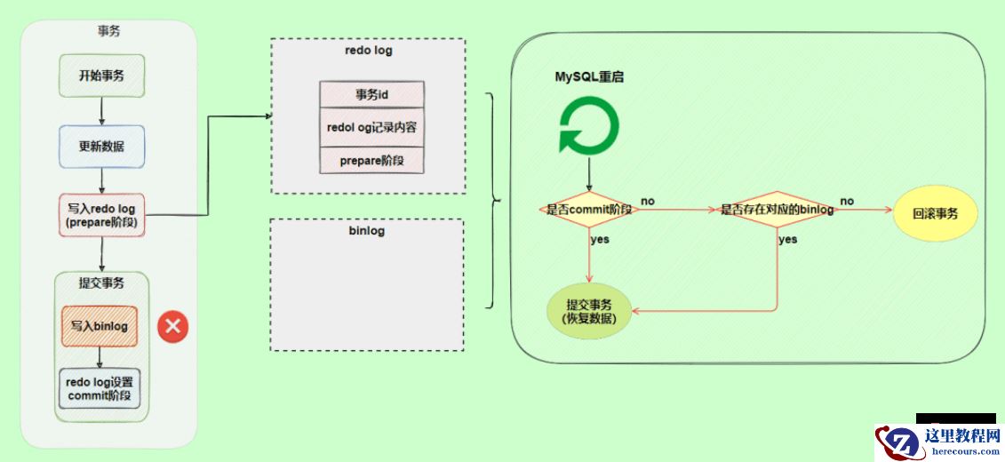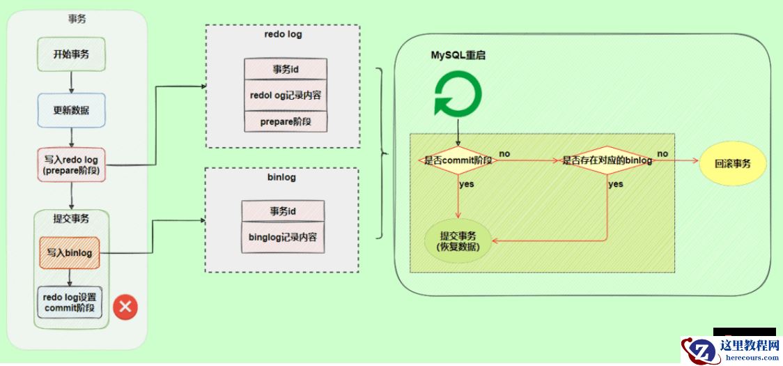 使用两阶段提交后,写入binlog时发生异常也不会有影响,因为MySQL根据redo log日志恢复数据时发现redo log还处于prepare阶段,并且没有对应binlog日志,就会提交失败,回滚数据。