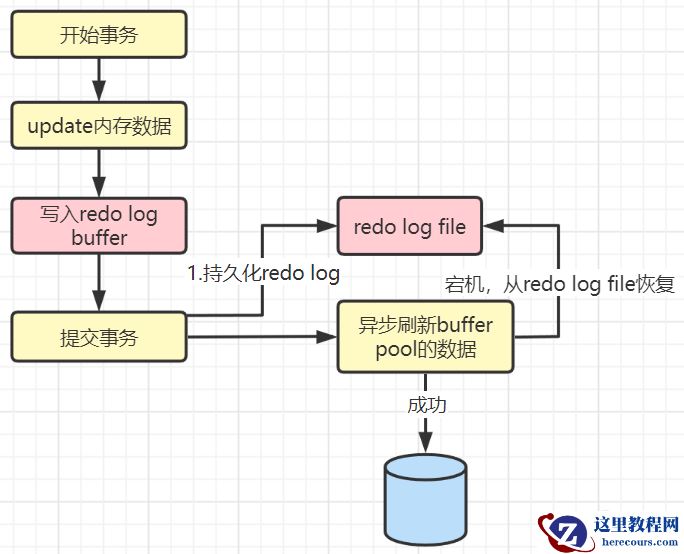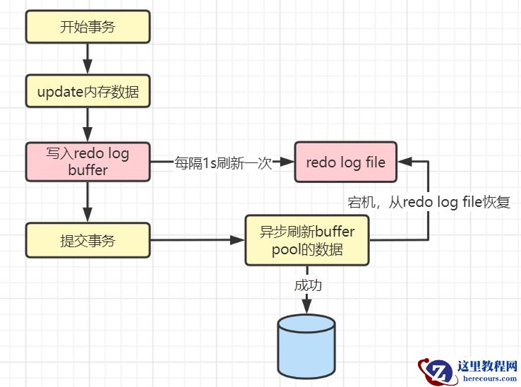 第3步:默认在事务提交后将redo log buffer中的内容刷新到redo log file,对redo log file采用追加写的方式