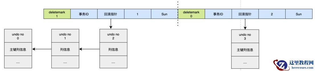 2. 通过undo no=2的日志把id=1的数据的deletemark还原成0