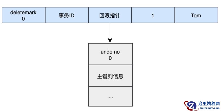 INSERT INTO user (name) VALUES ('tom');插入的数据都会生成一条insert undo log,并且数据的回滚指针会指向它。undo log会记录undo log的序号、插入主键的列和值...,那么在进行rollback的时候,通过主键直接把对应的数据删除即可。