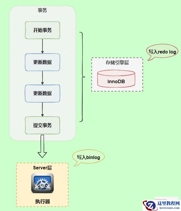 在执行更新语句过程,会记录redo log与binlog两块日志,以基本的事务为单位,redo log在事务执行过程中可以不断写入,而binlog只有在提交事务时才写入,所以redo log与binlog的写入时机不一样。