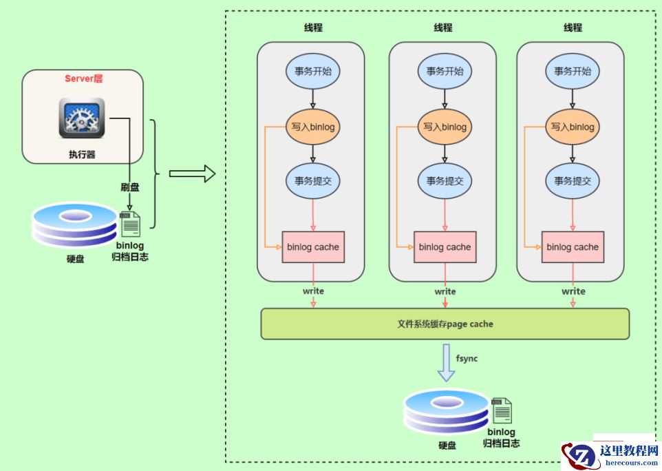 事务执行过程中,先把日志写到bin log cache ,事务提交的时候,再把binlog cache写到binlog文件中。因为一个事务的binlog不能被拆开,无论这个事务多大,也要确保一次性写入,所以系统会给每个线程分配一个块内存作为binlog cache。
