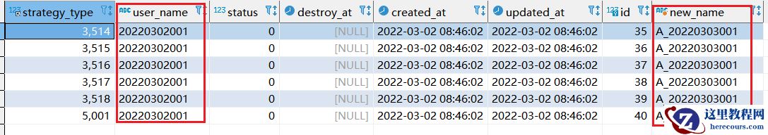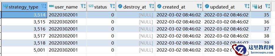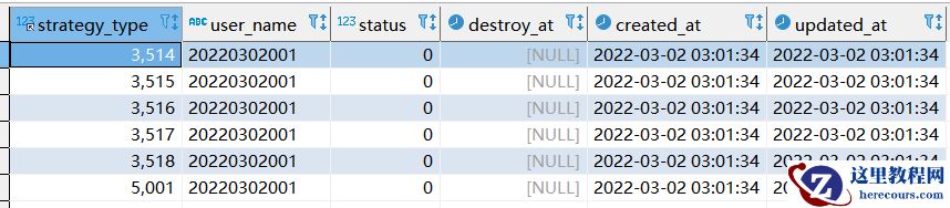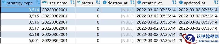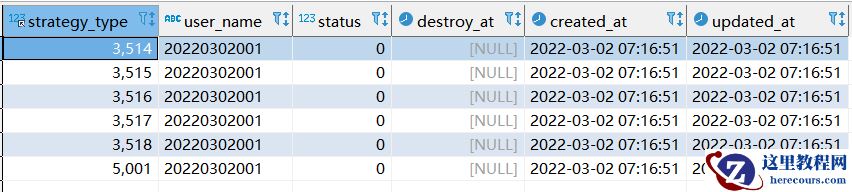 我们将strategy_type & user_name 联合唯一索引删除,且删除20220302001用户所有数据。最终表格结构如下: