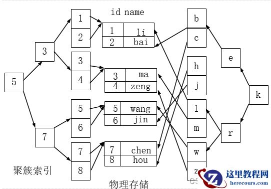 如下图,左侧的索引就是聚簇索引,因为数据行在磁盘的排列和索引排序保持一致。