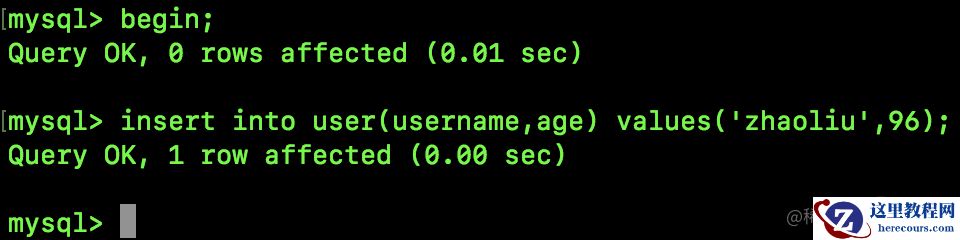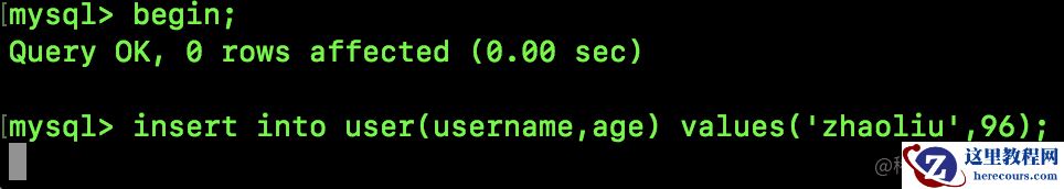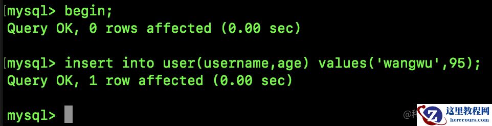 begin;insert into user(username,age) values('wangwu',95);注意,这个 SQL 执行了但是事务还没有提交。