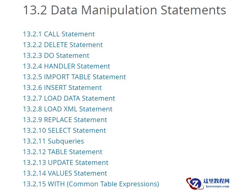 一共是15种,分别是CALL、DELETE、DO、HANDLER、IMPORT TABLE、INSERT、LOAD DATA、LOAD XML、REPL ACE、SELECT、Subqueries、TABLE、UPDATE、VALUES、WITH。