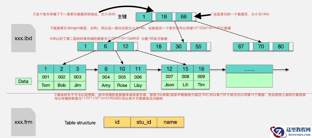 第二层其实比较容易,因为每个节点数据结构和跟节点一样,而且在跟节点每个元素都会延伸出来一个节点,所以第二层的数据量是1170*1170=1368900,问题在于第三层,因为innodb的叶子节点,是直接包含整条mysql数据的,如果字段非常多的话数据所占空间是不小的,我们这里以1kb计算,所以在第三层,每个节点为16kb,那么每个节点是可以放16个数据的,所以最终mysql可以存储的总数据为