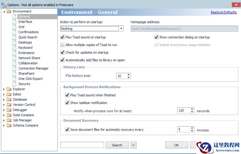 3.在toad里面Options设置在启动的时候启动连接