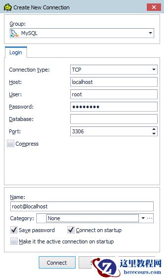 下次启动弹出连接窗口,输入用户名root 密码:自己安装MySQL时设置的