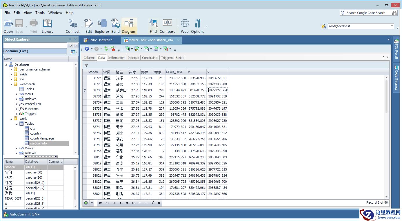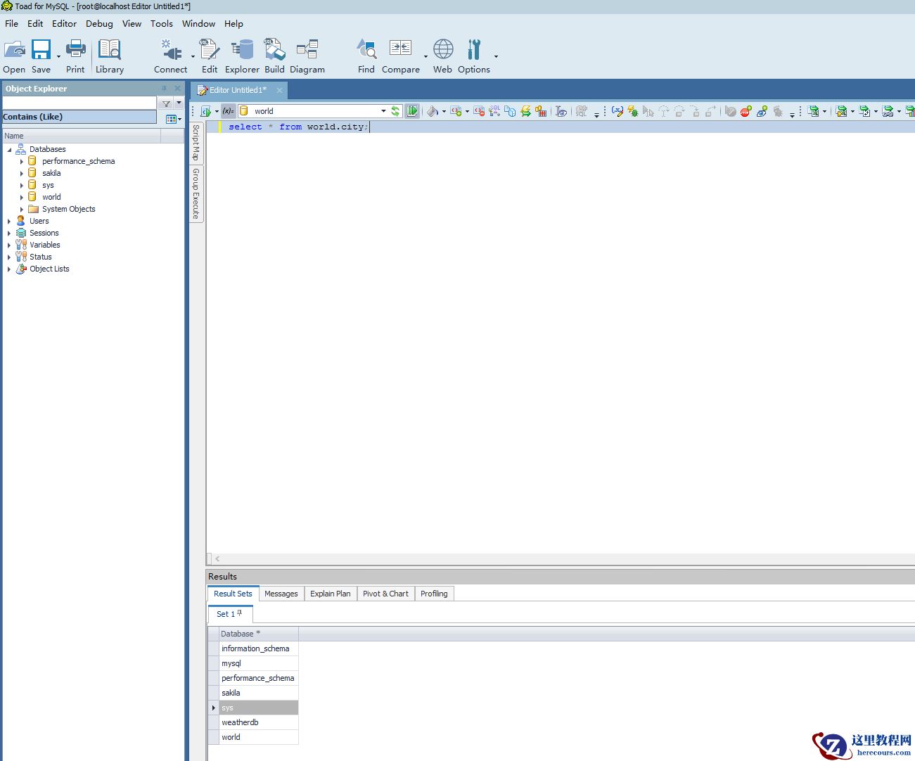 在toad for mysql新建一个editor(pl/sql的查询语句和命令语句是要新建不同的窗口的,没想到toad for mysql是不用的 直接一个editor窗口搞定)。输入