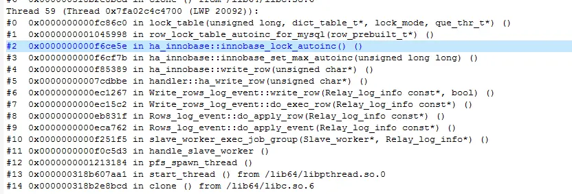 innodb_autoinc_lock_mode设置为2,从逻辑来看肯定不会做row_lock_table_autoinc_for_mysql了。
