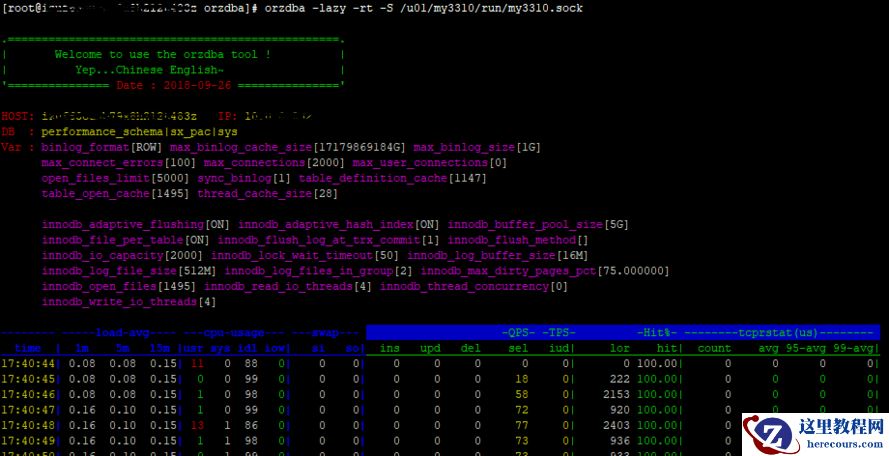 # ./orzdba -lazy -rt -S /u01/my3306/run/mysql.sock