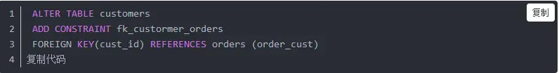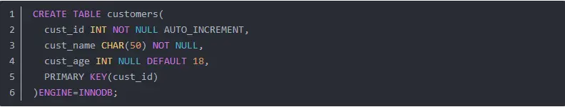 用于显示创建表时的创建语句 :SHOW CREATE TABLE customers;