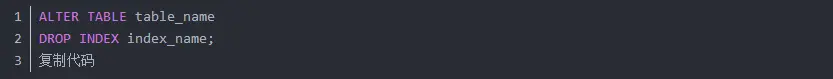 删除指定表中指定名称的索引,语法为: